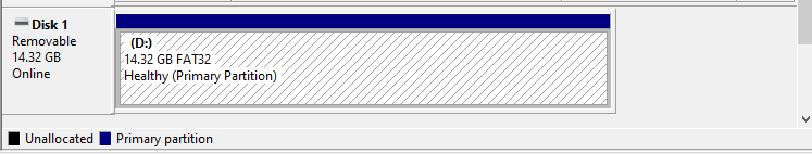 - Below is a screenshot of a USB drive right after trying to use windows default reformat, the 4K device will try to read the primary petition and never read the unallocated part that the update image is on.